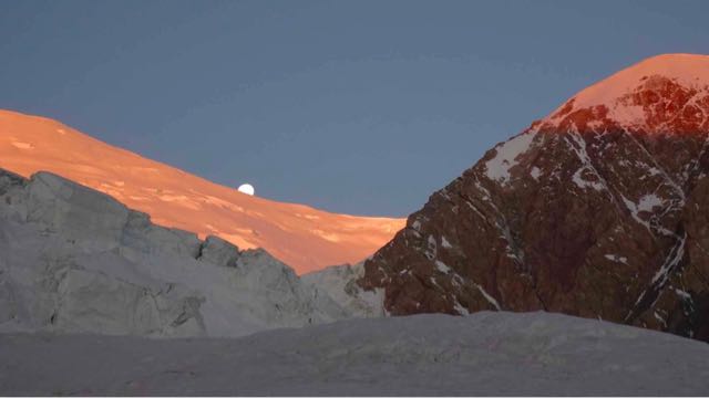 Wie immer ist es im Dunkeln schwierig, den Weg zu finden, doch da ich am Vortag den Weg bis zum Beginn des steilen Gletshers erkundet hatte, kamen wir auf den Moränen und Gletscherzungen rasch voran.