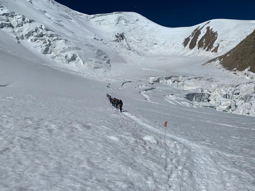 Den heutigen Tag haben wir zur Akklimatisierung genutzt. Von unserem Lager 2 auf 5300m sind wir in Richtung Lager 3 aufgesteigen.
