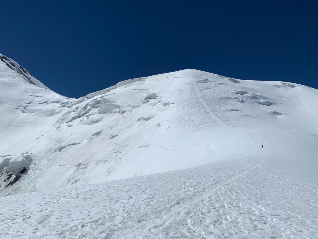 Wie die Bilder zeigen, ist das Wetter weiterhin traumhaft und die Ausblicke auf den Gipfel grandios.