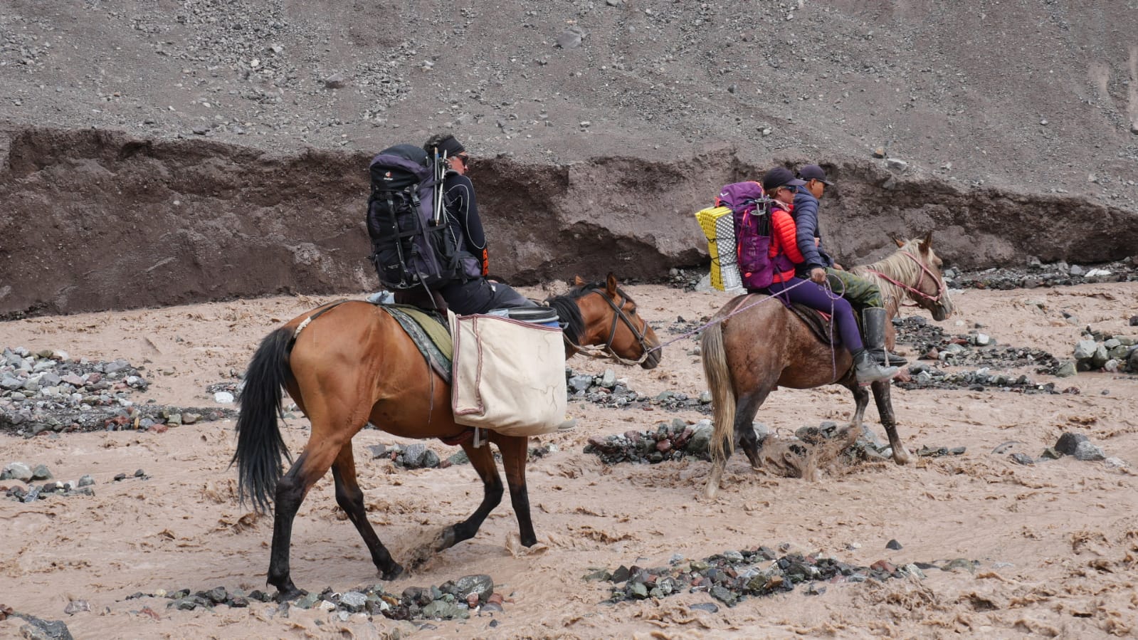 Unsere Gruppe ist ins Basislager abgestiegen. Nach ca 4 Stunden Gehzeit erwartete uns ein gutes Mittagessen, eine Dusche und ein wohlverdientes Bier :-) Der Abstieg war unspektakulär - nur kurz mussten wir für eine Bachquerung auf Pferden reiten.