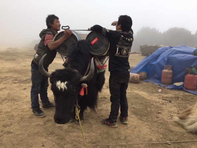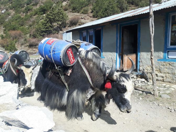 Heute nächsten Morgen sind unsere Yaks mit der unsere Ausrüstung fürs Basislager vorbeigekommen.