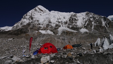 Markus und ich, sowie unser nepalesisches Team haben das Basislager nun fertig aufgebaut. Seit heute ist die Küche eingerichtet, das Klozelt steht und unser Aufenthaltszelt ist nun voll eingerichtet, mit Tisch und Stühlen, Kommunikationszentrale und alles weitere was wir in den kommenden Wochen hier benötigen werden. Dieser Komfort ist für uns sehr wichtig, da das Basislager für die kommenden 5 Wochen unser „Zuhause“ sein wird, wo wir uns erholen möchten und neue Kraft schöpfen müssen.