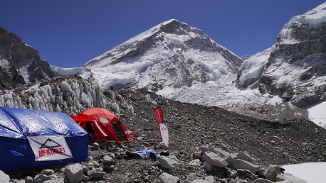 eine der fixen Größen im Everest Basislager sind. Lakpa Rita selbst hat den Everest 17 mal bestiegen. Nach dem großen Eissturz im Jahr 2014, bei dem 6 seiner Sherpas ums Leben gekommen sind, hat er beschlossen, den Berg selbst nicht mehr zu besteigen, doch ist er der erfahrendste Sirdar – Basecamp Manager – der zur Zeit hier anzutreffen ist.