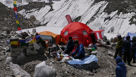 Nachmittags haben wir unsere Rücksäcke für morgen vorbereitet und gepackt. Wir planen morgen durch den Khumbu Eisbruch ins Lager 1 aufzusteigen, dort zu übernachten und übermorgen weiter ins Lager 2, wo wir ebenfalls 1 oder sogar 2 Nächte verbringen möchten, um uns an die nächsten Höhen am Mt. Everest zu akklimatisieren. Wir starten mit Rucksäcken, die ca. 20 Kg wiegen. Erste Hürde wir der Eisbruch sein, von dem wir bisher eher gutes als schlechtes gehört haben! Mal sehen, wie wir morgen durchkommen…
