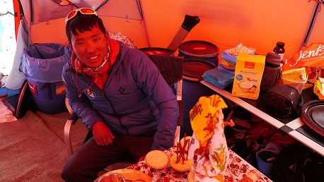 Heute hatten wir unsere Puja, die Gebetszeremonie, die die Berggötter gnädig für unseren Aufstieg stimmen sollte. Hierzu ist ein Lama gekommen, selbst Sherpa und Bergsteiger.