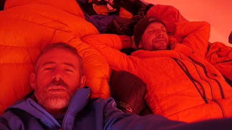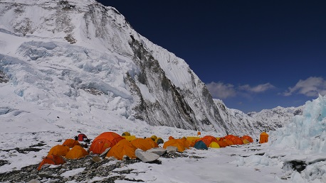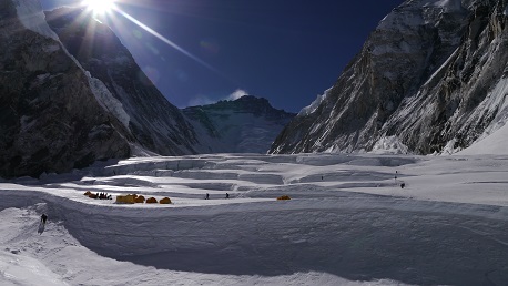 Nach ca. 5,5 Stunden habe ich das Lager 1 erreicht, bzw. den untersten Bereich von C1. Das Lager selbst zieht sich, oberhalb des Khumbu Eisbruches – über mehrere Stufen. Markus, der wesentlich schneller als ich unterwegs war, hatte das Zelt im obersten Bereich des Lagers schon aufgebaut, nach einem kurzen Funkspruch konnte ich es dann auch schnell lokalisieren und erreichen. Nun fängt für uns das Hochlagerleben an: Zelt aufbauen, einrichten, auf minimalem Platz die gesamte, nicht geringe, Ausrüstung verstauen, Schnee holen, Schnee schmelzen, Tee trinken, Kochen… alles lebenswichtige Aktivitäten, die in dieser Umgebung einiges an Energie und sehr viel Motivation benötigen. Mehr dazu in den kommenden Berichten…