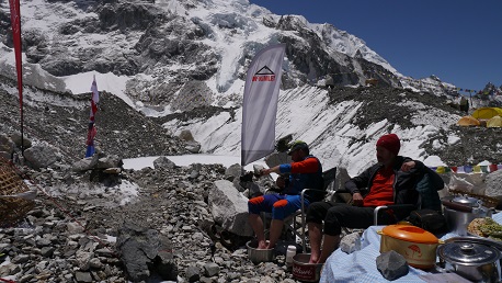 Nach den Strapazen der letzten Tage am Berg haben wir heute einen Rast- und Regenerationstag eingelegt. Alltagsleben in unserem derzeitigen Zuhause, dem Basislager. Spätes Frühstück, so gegen 08:30 Uhr, also wenn die Sonne die Schlafzelte schon schön aufgeheizt hat. Wongdi bereitet uns eine Top Eierspeise mit viel Speck (Danke an die Fa. Rumpold aus Neukirchen am Großvenediger), danach wird gemütlich am (Frühstücks-)Tisch gesessen und über das Erlebte sinniert und über die nächsten Tage debattiert.