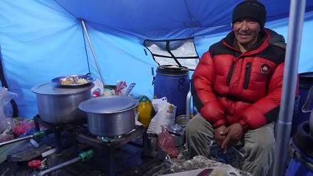 Drei Tage in unserem gemütlichen Basislager stellen jeden müden Bergsteiger wieder her! Gutes Essen in rauen Mengen, viel Schlaf, viel Entspannung, tolle Betreuung von unserem Basislagerteam Gopi, WongDi und Bim, unserem neuen Küchenjungen…