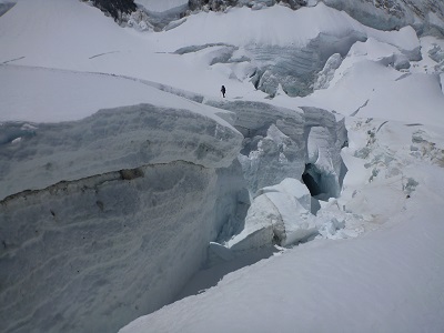 Aber der Reihe nach: Montag sind wir bei gutem Wetter wie geplant von unserem Basislager auf auf 5250 Meter durch den Khumbu Eisfall am Lager 1 vorbei bis in unser Lager 2 auf 6500 Meter gestiegen. Gutes Wetter, starke Sonne, hohe Temperaturen… Eigentlich alles perfekt für Ende Mai.