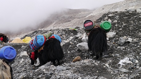 Was wir am Everest gesehen und erlebt haben, hat uns teilweise regelrecht schockiert! Ca. 95% der „Bergsteiger“, die den Berg besteigen wollen, sind dort leider gänzlich fehl am Platz. Viele haben noch nie Steigeisen benutzt bzw. angezogen, manche haben noch nie einen Berg bestiegen… 95% sind mit Flaschensauerstoff unterwegs, viele ab Lager 2 (6500m), fast alle spätestens ab Lager 3 (7000m). Es werden Unmengen an Sauerstoffflaschen am Berg transportiert, um diesem Bedarf gerecht zu werden. Natürlich sind es die Sherpas, Hochträger und Guides, die als wahre Helden dies ermöglichen, für einen relativen „Hungerlohn“. Viele dieser Bergsteiger tragen kaum etwas selbst auf den Berg – wenn man sieht, dass viele davon mit einem Mini-Rucksack mit maximal 35-40 Litern unterwegs sind, kann man sich vorstellen wie groß da der Einsatz ist…