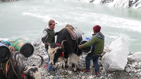 Am 27.05. ist dann pünktlich unsere Yak Karawane eingetroffen, die rasch beladen wurde und wir haben unseren 3-tägigen Abstieg begonnen.