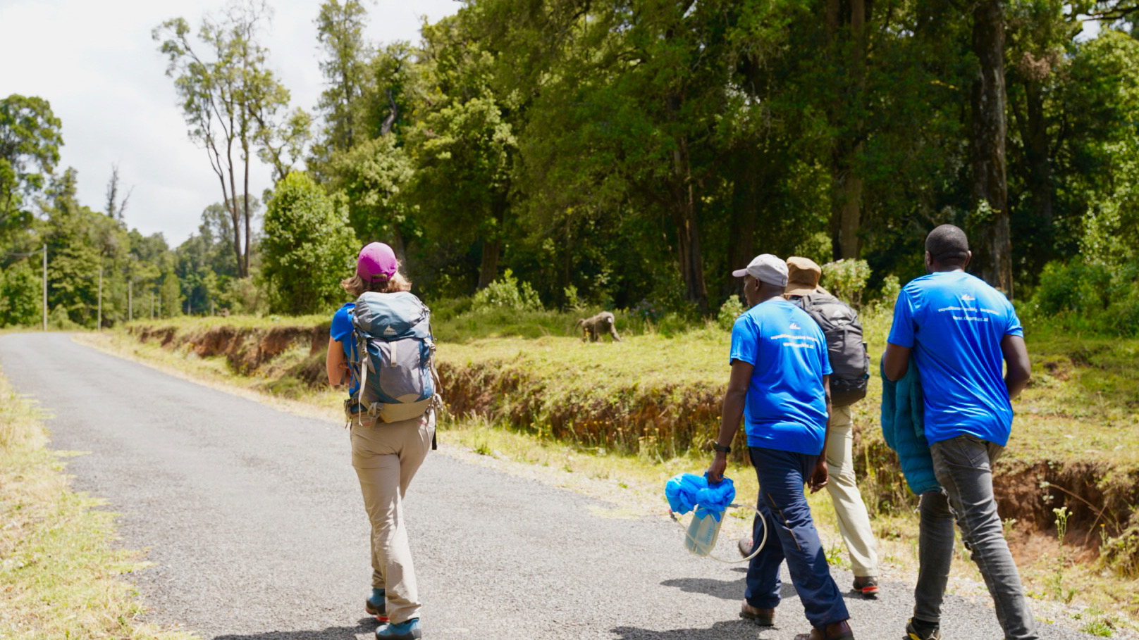 Nach einer knappen Studnen Fahrt waren wir auch schon am Sirimon Gate, 2650 Meter. Hier haben wir unsere restliche Mannschaft getroffen, die uns in den kommenden Tagen begleiten wird. Neben unserem Hautpguide Isaak sind dies James, der Assistant-Guide, Losmaria, unsere „Kellnerin“, sowie ein Koch und 6 Träger, deren Bekanntschaft wir heute noch nicht gemacht haben. Das wird sich heute Abend bzw. Heute Abend noch alles gemütlich ergeben.