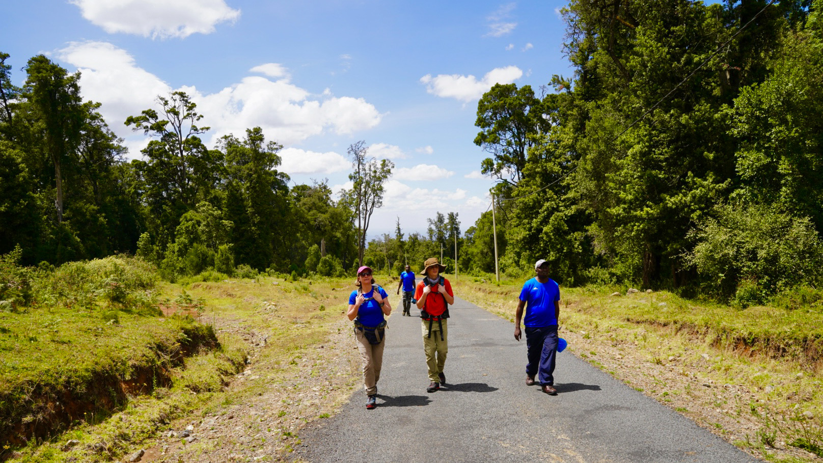 Das Wetter hat heute gehalten. Zwar hatten wir schon am Vormittag wieder die übliche starke Wolkenbildung um den Gipfelbereich des Mount-Kenya Massiv, aber es blieb trocken. Etwas Wind und auch die Wolken waren willkommen, denn wir hatten durchaus Temperaturen um oder vielleicht sogar über 25°C.
