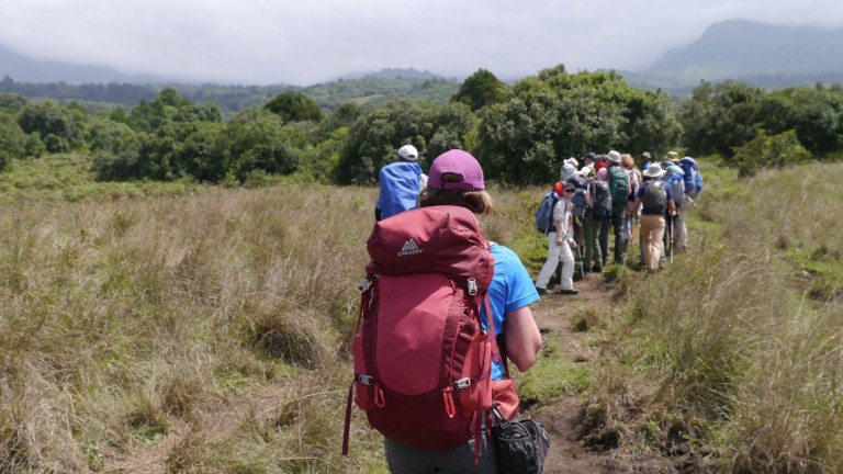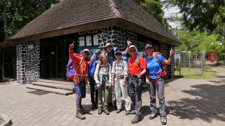 Letzte Nacht hat es in Moshi stark geregnet und auch heute früh, als ich meine Gruppe in der African View Lodge abgeholt habe, regnete es noch leicht. Aber ab unseren eintritt in den Arusha nationalpark kam die Sonne wie bestellt am heraus. Rechtzeitig zum Start unserer ersten Etappe.