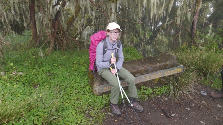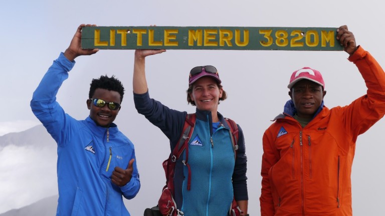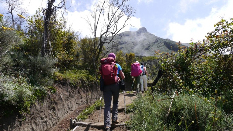 Erst oberhalb des Regenwaldgürtels auf knapp 3200 m löste sich der Nebel auf und gab den Blick auf den Little Mt. Meru 3820m frei.