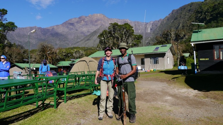 Heute Morgen wurden wir von traumhaftem Wetter und perfekten Blicken auf den Kilimanjaro begrüsst. Nach einem recht späten Frühstück um 8 Uhr machten wir uns mit unserem Ranger Good Luck und unserer Mannschaft auf den letzten Abstieg. Diesmal ging es bei strahlend blauem Himmel durch den Regenwald und wir haben die immer dicker werdende Luft genossen.