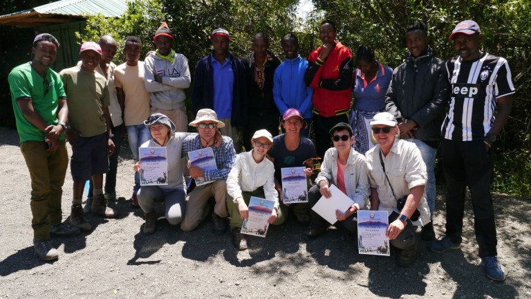 Beim Momella Gate angekommen haben wir zunächst unsere Gipfel-Certificates überreicht bekommen, bevor wir uns von unserer Mannschaft herzlich verabschiedet haben. Unseren Guide George werden wir am Kilimanjaro wiedertreffen aber den Rest unserer 12-köpfingen Crew werden wir nicht mehr treffen.