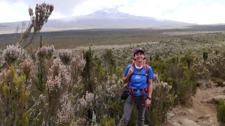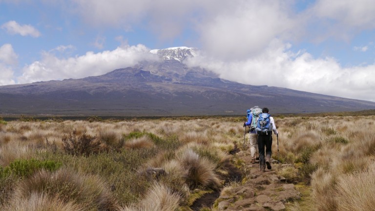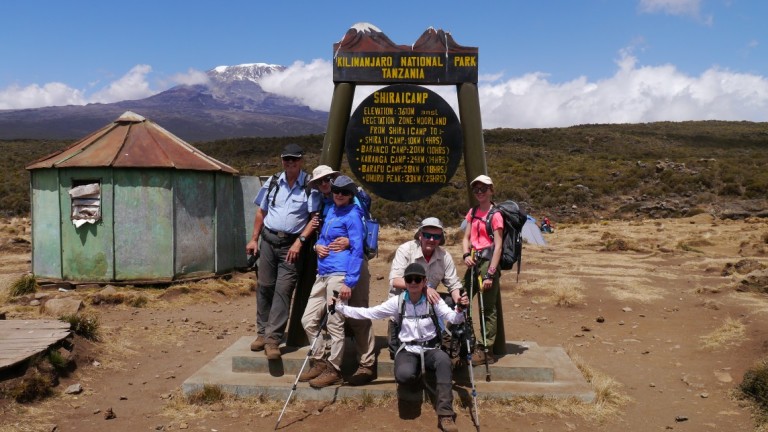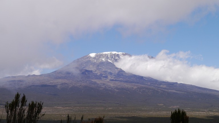 Nach knapp 3 Stunden erblickten wir erstmals den Kibo. Ein mächtiger, schneebedeckter Gipfel leuchtet zu uns herunter und die Fotoapparate liefen wieder heiss.