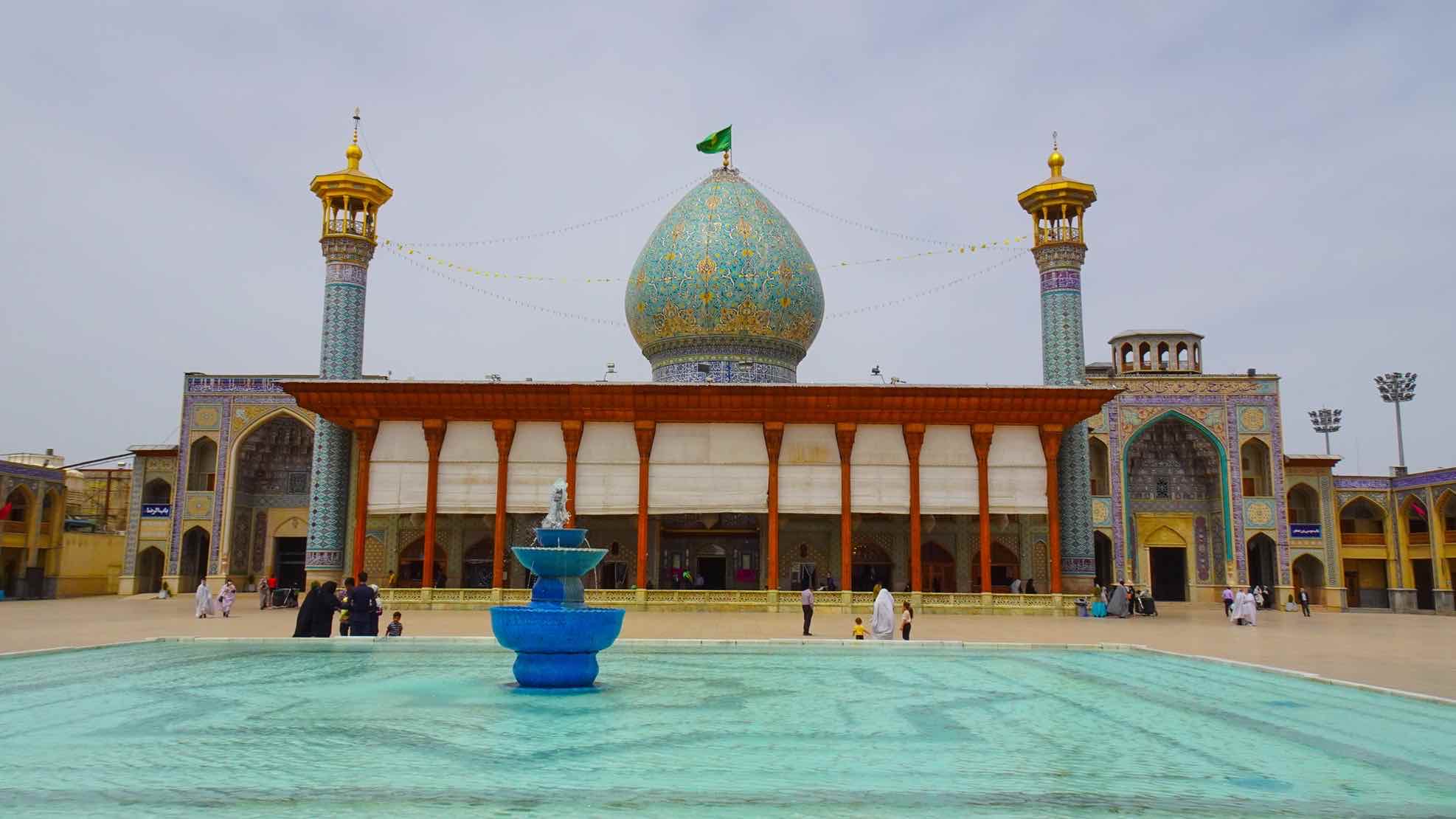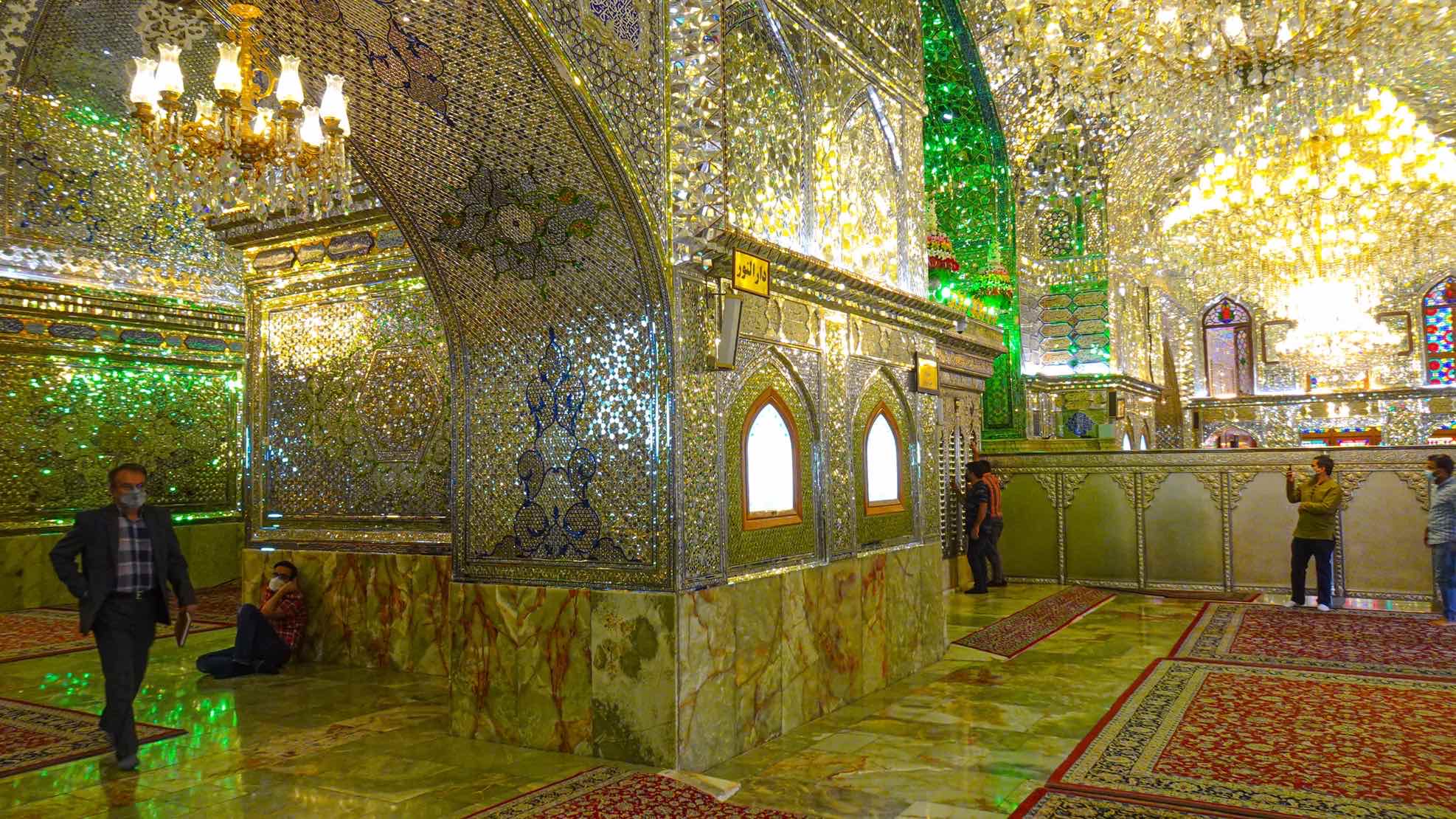 Das Highlight des Tages war aber wohl der Besuch des Shah-Cheragh Heiligtums! In diesem Heilgtum, dem dritt-wichtigsten des Iran, liegt der Bruder des 8. Imam begraben. Ein riesiges Areal, mit verschiedenen großen Innenhöfen, Gebetsräumen, Minaretten und Ewans, den großen verzeichneten Toren, bzw. Eingängen zu den Gebetsräumen.