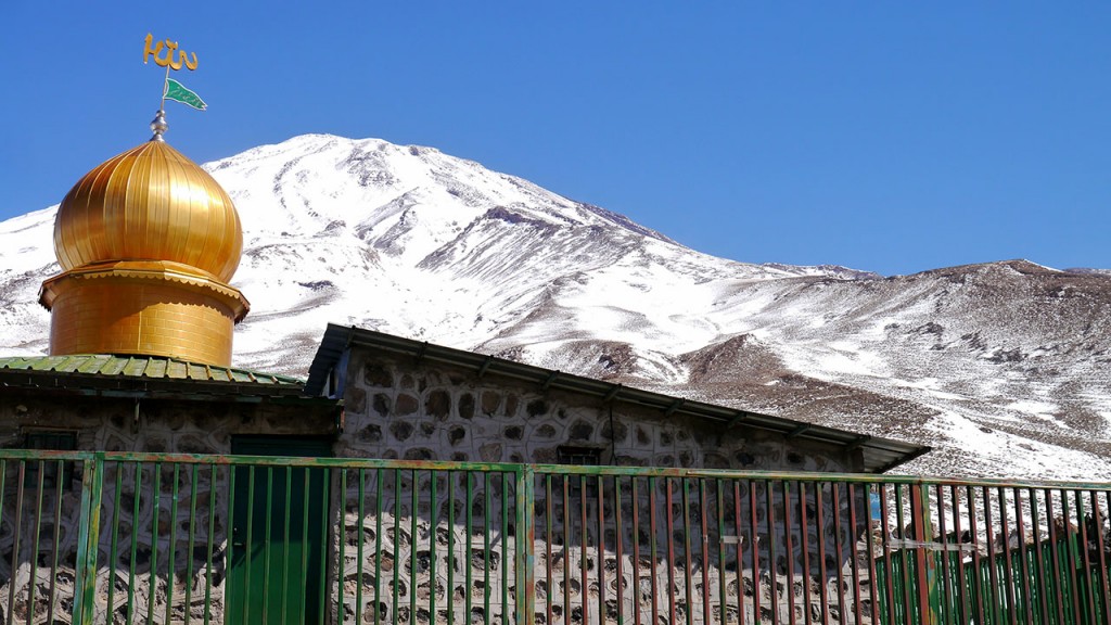 Im Hintergrund der mächtige Vulkankegel des Damavand.