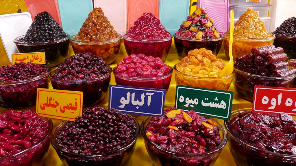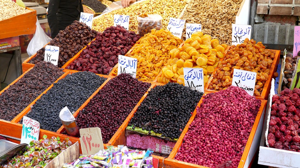 Am riesigen Bazaar von Teheran gibt es viele Köstlichkeiten! Getrocknete Früchte, Nüsse...