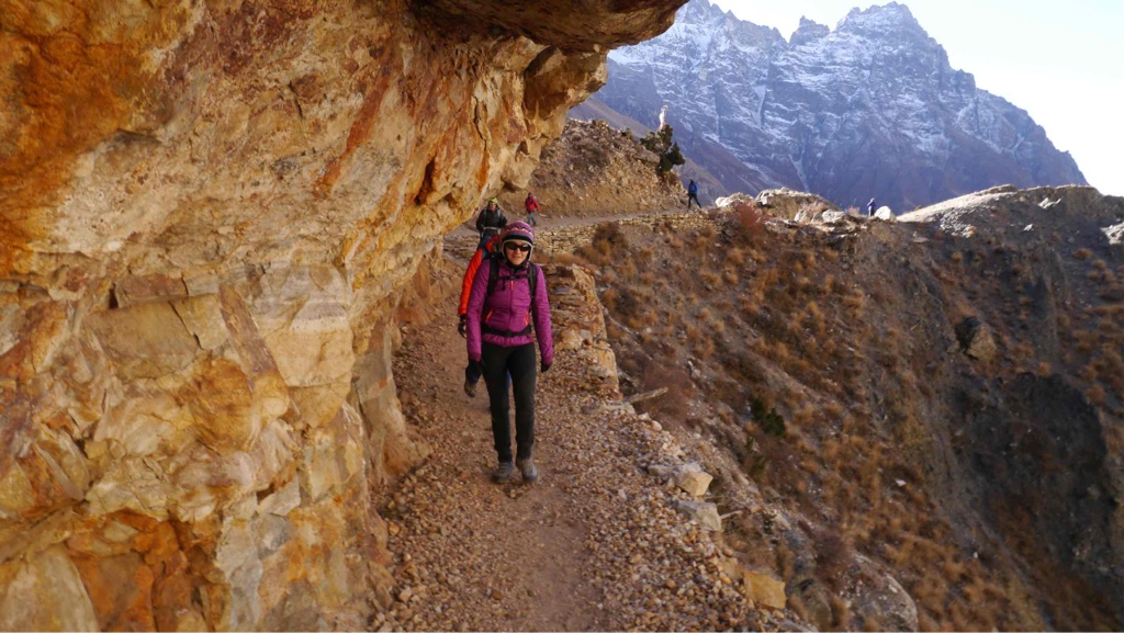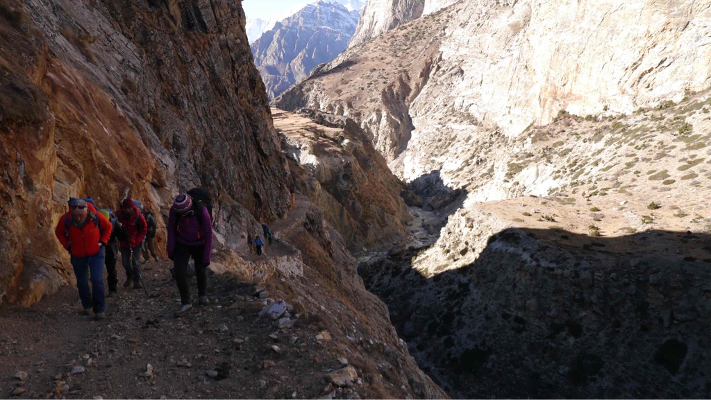Der Weg selbst ist stellenweise sehr waghalsig in die steilen Wände der Schlucht gebaut. Eine Himalaya-Etappe, wie sie kaum schöner sein könnte!
