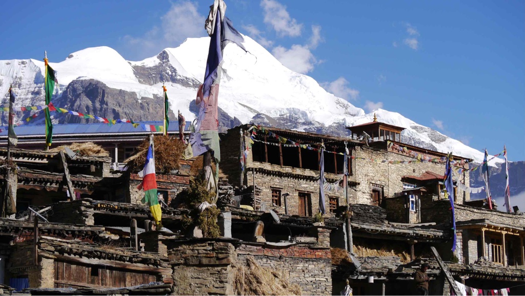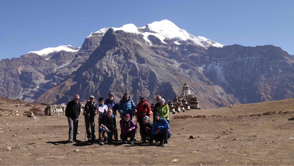 Tolle Blicke auf die umliegenden Bergriesen, unter Anderem den Kanguru Himal, knapp 7000 Meter hoch, aber doch imposant und ein Blickfang inmitten der kargen Gebirgslandschaft.