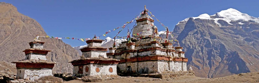 Riesen Chörten und Stupas markieren den Eingang zu Nar
