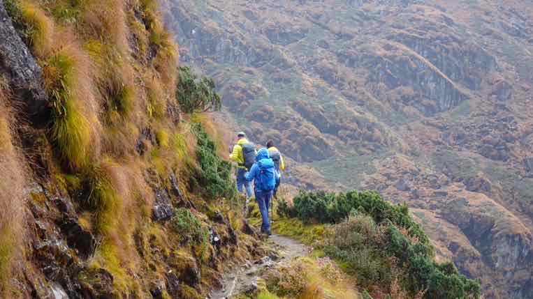 Langer Abstieg von Thuli Kharka (4200m) bis nach Khote (3600m) am Talboden des Hinku Tal.