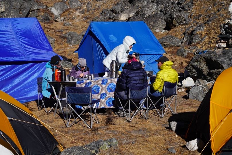 Ein angenehmes Frühstück in der Sonne, auf 4900 m in unserem Basislager.
