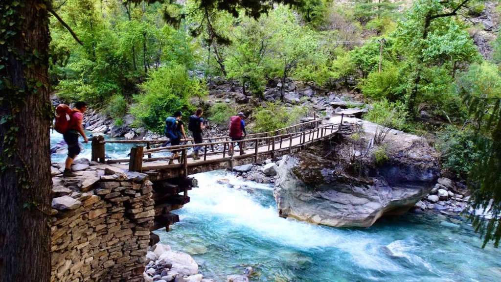 Durch das enge und immer schöner werdende Tal stiegen wir auf kleinem Pfad auf. Heute schon ein ziemliches auf und ab, „Nepali Flat“ wie unsere Begleiter das gerne nennen…
