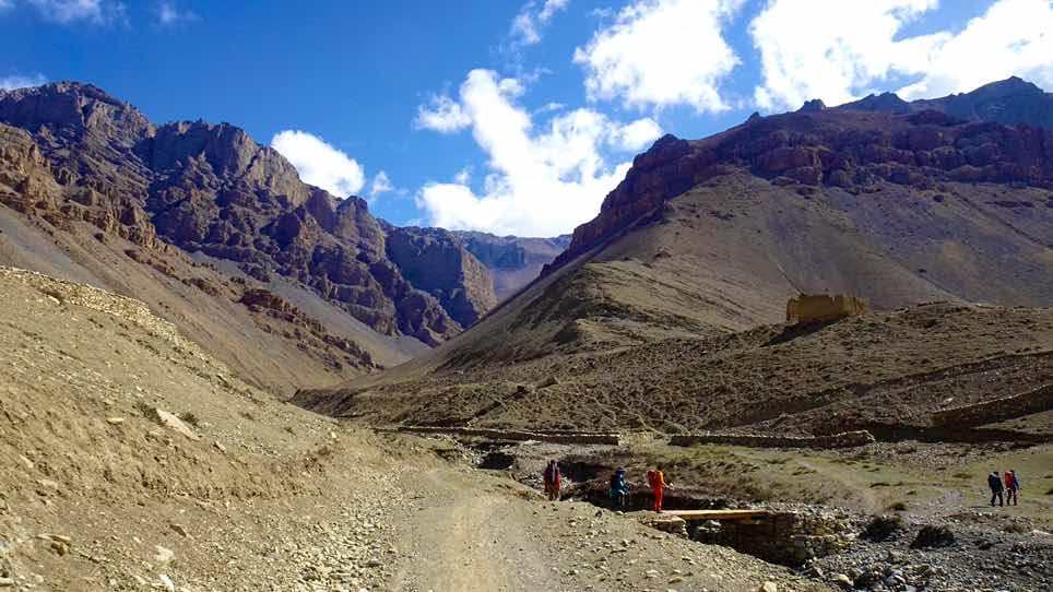 Bis wir nach Nordosten in Richtung des Jyarkhoi La aufgestiegen sind. Wir sind heute nur langsam voran, auch weil wir es nicht allzu eilig hatten, die Etappe bis in unser Basislager unterhalb des Passes war nicht allzu lang.