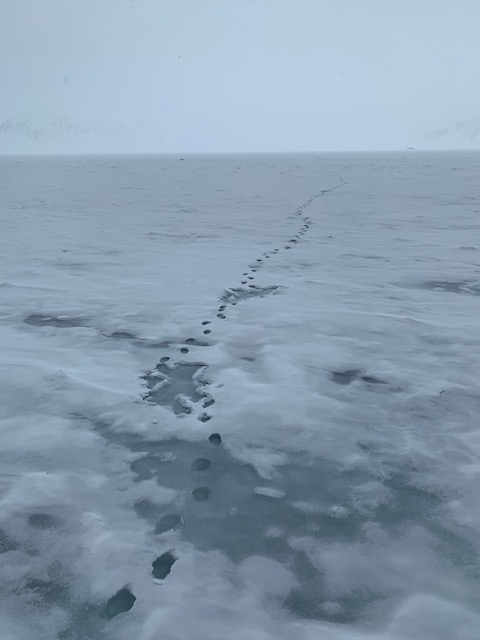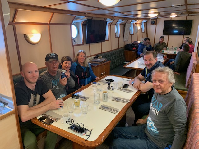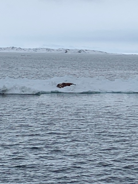 Somit wurde es ein gemütlicher Rasttag am Schiff. Zeit für ein Buch, Kartenspielen, auch Fotos wurden schon getauscht und ein Tisch wirde kurzerhand zu einem Tischtennis umfunktioniert. Mittags gab es eine gute Suppe und zwischendurch wurden wir immer wieder an Deck gerufen, um ein Walross oder frische Eisbärspuren, wenn auch leider keine Eisbären, zu beobachten.