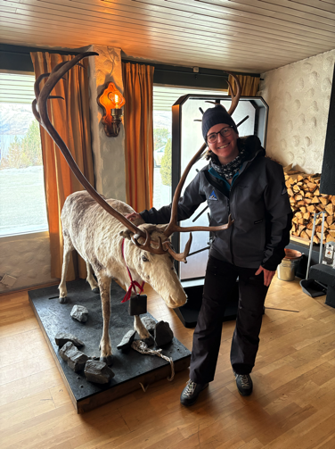 Bei einem Saunabesuch wärmen wir uns wieder auf und lassen uns am Abend eine Rentierlasagne schmecken.