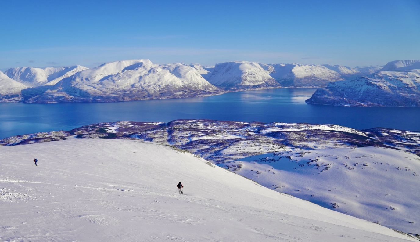Bei tollem Wetter waren wir heute am Fastdalstinden, nördlich von Lyngseidet. Eigentlich wollten wir mit der Fähre Richtung Djupvic fahren und auf den Storshaugen, aber die Fähre fährt am Sonntag erst um 11:00. insofern haben wir umdisponiert und es war eine gute Wahl.