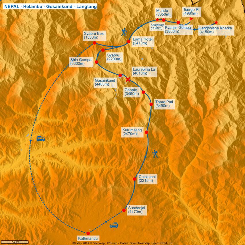 Zwei ganze Tage stehen uns zur Verfügung, um dieses wunderschöne und an hochalpine Gebiete grenzende Tal zu erkunden. Bei guten Bedingungen kann der technisch unanspruchsvolle Tsergo-Ri (4980 Meter) bestiegen werden. Von dieser Aussichtskanzel bieten sich uns Blicke über die gesamten umliegenden Gipfel und Berge des Himalaya.